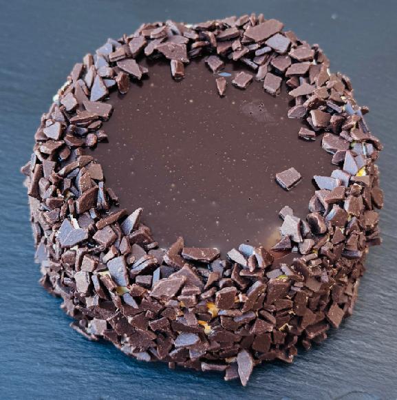 • piškotový korpus, meruňkový tvarohový krém, čokoládový přeliv, obsypaný čokoládou