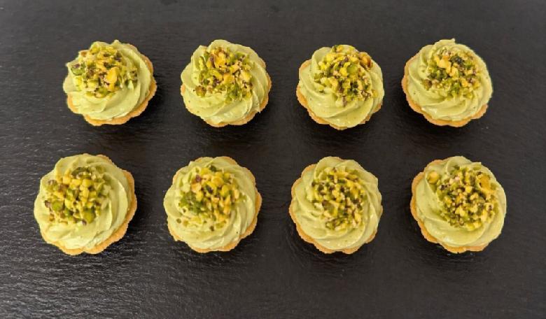• košíčky z lineckého těsta s pistáciovým krémem a pistáciemi